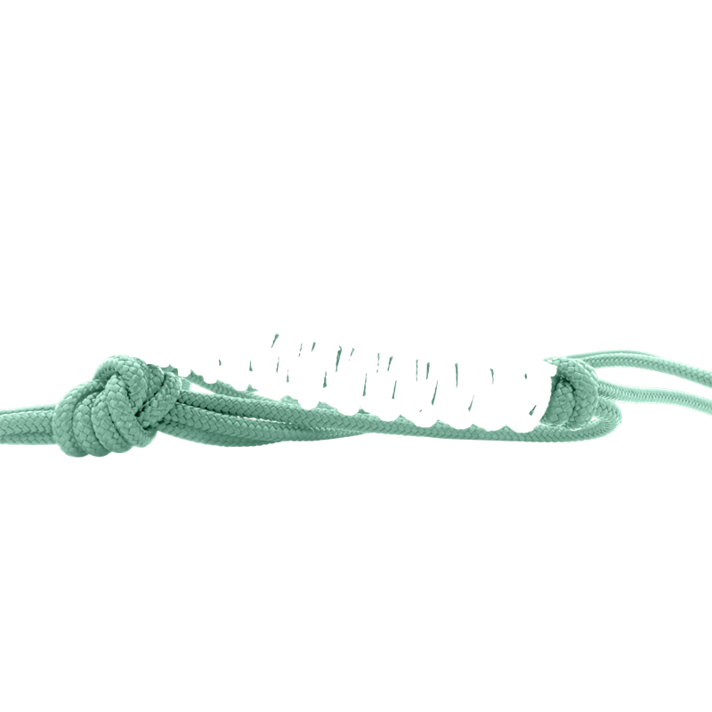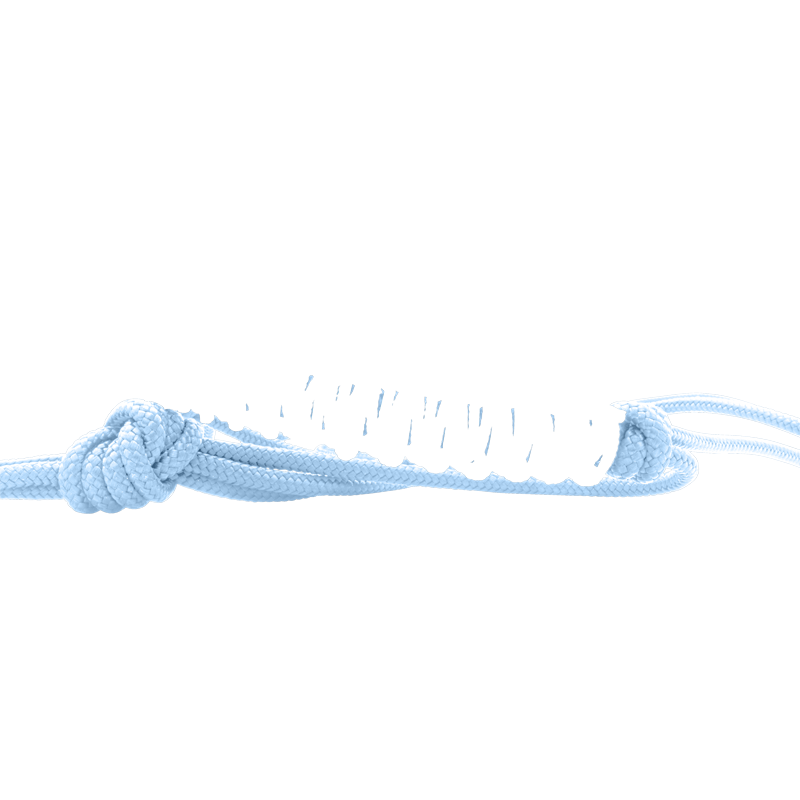 Le licol en corde Azur est réalisé en corde polypropylène de 6 mm. Cette corde est souple, elle est résistante à l'abrasion, aux UVs, elle ne se gorge pas d'eau et se lave facilement en machine à 30°C. Le tressage sur la muserolle et des liens de la têtière sont réalisés en corde de 3 mm.